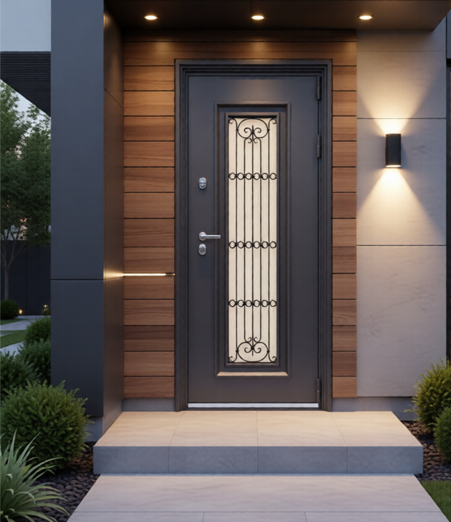 Любые расцветки, вставки из стекла, кованые элементы, биометрические электронные системы открывания и многое другое.