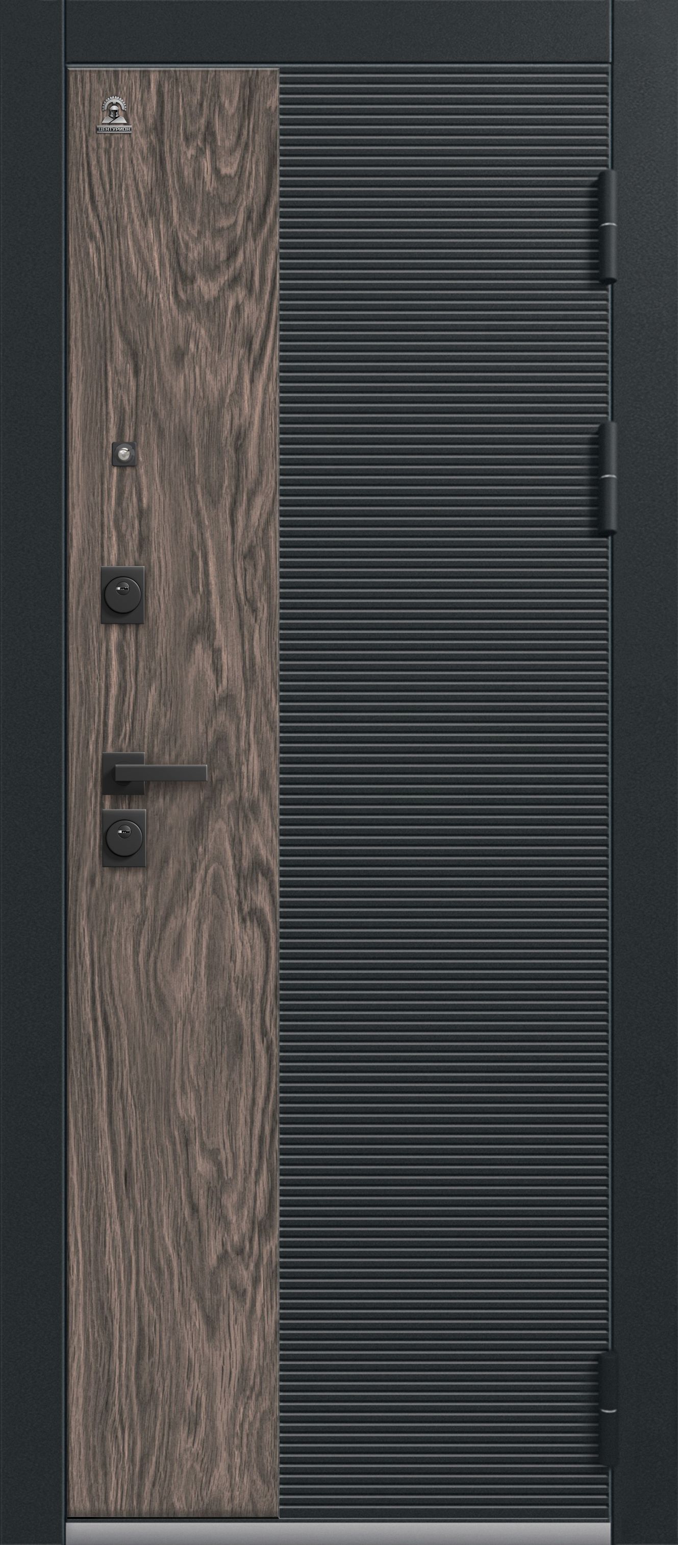 Данная модель имеет внешнюю дизайнерскую панель – сочетание черного цвета и имитации породы дерева. Это позволяет двери С-112 выглядеть стильно не только внутри, но и снаружи. Внутренняя панель в цветах белый или базальт. Дверь выглядит стильно, современно и дорого.
